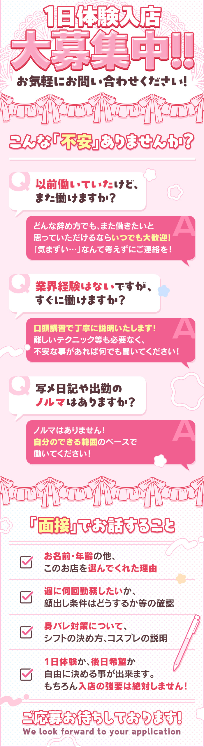 面接後、その日に体験入店可能です。