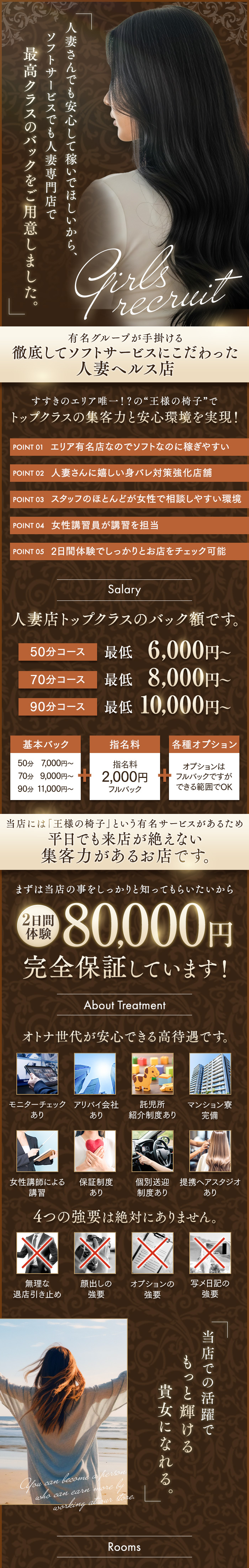 体験入店された方には必ず2日体験8万円を完全保証しております。難しい条件等は一切なく、体験入店をされた方全員が対象です!