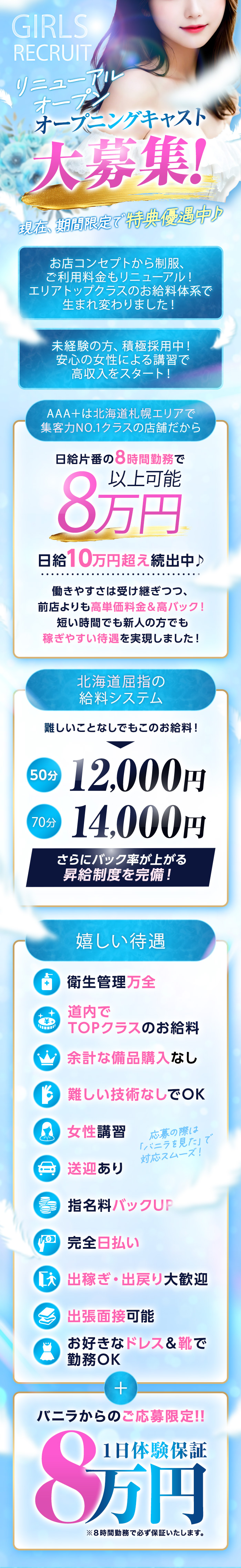 ★★業種・ソープ★★エリア・札幌こんばんは!Rです✨今日もお給料公開して行きます(^^♪9日 給料公開 1位 Kさん 早番勤務 87.000円2位 Mさん 早番勤務 75.000円3位 Kさん 遅番勤務 53.000円平均 7名 55.000円それではっ!皆様のご応募お待ちしております✨