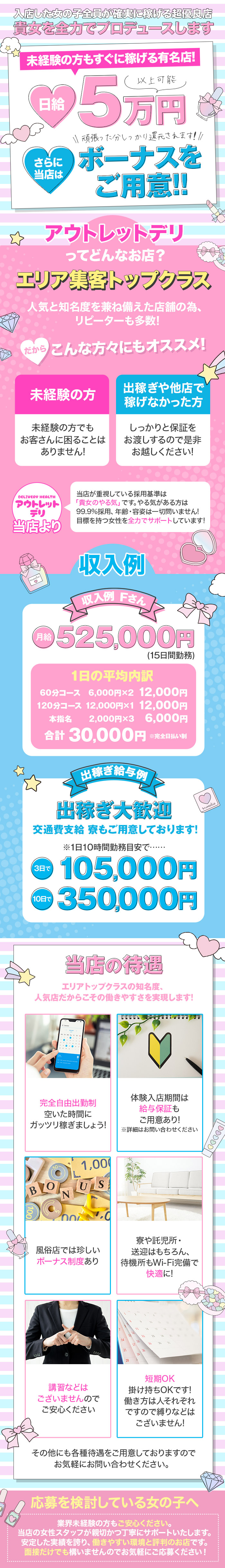 ◆体験入店可能 ◆出張面接可能 ◆短期OK ◆完全日払い制 ◆送りあり迎えあり ◆生理休暇 ◆寮完備 ◆託児所完備 ◆個室待機 ◆アリバイ対策対応可能 ◆未経験者歓迎 |