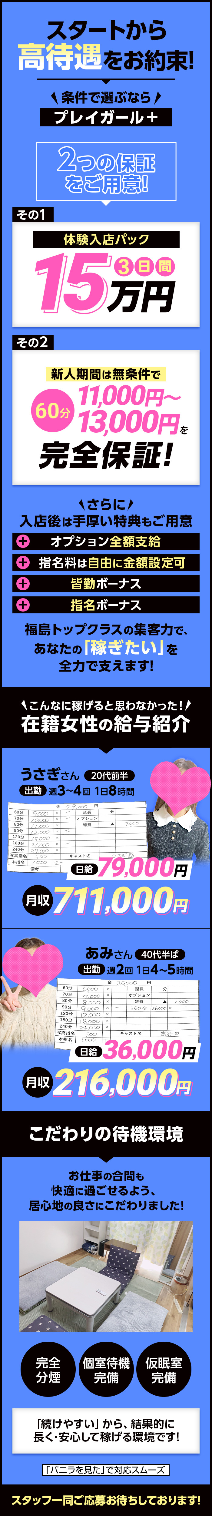 ○日払いOK! ◯脱毛・ホワイトニング無料! ○個室待機OK! ○自宅待機OK! ○漫喫待機OK! ○即日入居可能寮完備! ○1日体験入店OK! ○前借制度アリ!! ○友人紹介で高額ボーナス支給!! ○毎月皆勤ボーナス・指名ボーナス支給!! ○携帯貸出OK!! ○衛生管理万全!!(毎月性病検査あり) ○交通費支給!(県内・県外問わず) ○就労証明書・雇用証明書発行OK!! |