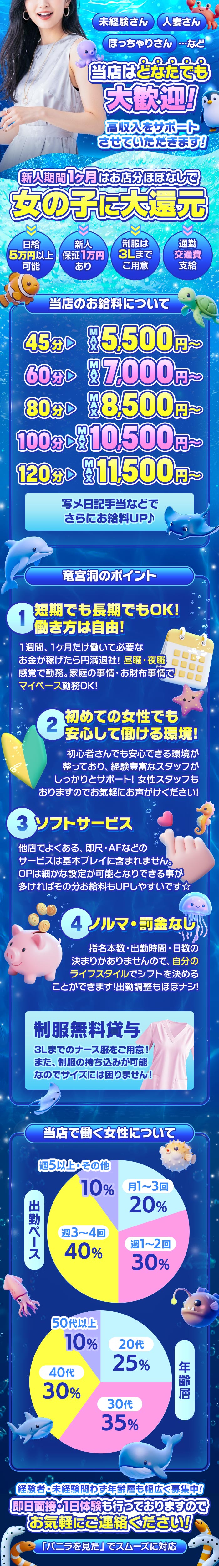 業界では珍しい 女性店長が在籍! 皆さんこんにちは、こんばんは(*'ω'*)ノ 竜宮洞、スタッフの瑞木です✨ 当店の最大の特徴は【女性店長】が在籍していることです! 風俗業界では男性の店長が圧倒的に多い中、女性ならではの視点で、働く女の子の気持ちに寄り添える環境を作っています。 女性の店長だからこそ分かる、細かい気配りや配慮… 生理の悩み、体調管理、プライベートとの両立など、男性には相談しにくいことも、気軽に話せる環境があります★ そして何より…当店の女性店長【森永】は、女性からも男性からも慕われる人柄の持ち主なんです! 優しさと厳しさのバランスが絶妙で、いつも公平に接してくれます。 何か困ったことがあれば、すぐに相談できる距離感。でも、プライベートにはズカズカ入り込まない適度な距離感。この絶妙なバランスが、みんなから愛される理由なんです♪ 【女性店長森永の魅力】 いつもスタッフファーストで 考えてくれる お店の利益よりも、まずは 女の子の働きやすさを最優先! 「今日は体調が悪い…」「急に子供の用事が…」そんな時も、森永なら理解してくれます。無理に出勤を強要されることはありません。むしろ「無理しないでね」「体調第一だよ」と声をかけてくれる温かさがあります★ また、シフトの相談も柔軟に対応してくれます。「来週は子供の行事があって…」「今月は少し多めに稼ぎたい…」 どんな要望も、まずは聞いてくれる姿勢があります(*'ω'*) お店のことも大切ですが、それ以上に働いてくれる女の子一人一人のことを考えてくれる。それが、森永の最大の魅力です💖 心配なことがあれば 気軽に相談できる どんな小さな悩みも、 親身になって聞いてくれます! 「お客様の対応で困ったことがあって…」「接客に自信がない…」「このお仕事、自分に向いてるかな…」仕事の悩みはもちろん、プライベートの相談も大歓迎です★ 女性店長だからこそ、女性特有の悩みも理解してくれます。 「生理痛がひどくて…」 「メイクの仕方がわからない…」 こんな相談も、気軽にできちゃいます(*'ω'*) 面接の時も、まずはお茶でも飲みながらゆっくりお話を聞いてくれます。「どんな働き方がしたいですか?」「不安なことはありませんか?」押し付けがましくなく、あなたの気持ちを第一に考えてくれる。そんな森永が、竜宮洞でお待ちしております♪ いかがでしたでしょうか?(*'ω'*) 女性店長がいるお店って、本当に安心できますよ✨ 「男性の店長だと、ちょっと相談しにくい…」「女性特有の悩みを理解してほしい…」 そんな不安を抱えている方にこそ、当店の女性店長【森永】に会っていただきたいです!! まずは、気軽にお問合せください★ 森永が、あなたのお話を聞かせていただきます♪ ではでは★ 皆さまのお問合せお待ちしております~✨ ↓↓↓↓森永店長に直で繋がります↓↓↓↓ ※※18歳未満・高校生の応募はできません 💝随時応募中💝 以下の方法でお気軽にご応募ください! ※未成年の方のご応募はできません 📱お電話でのご応募 TEL:080-9007-6819 採用担当:森永直通 受付時間:10:00〜22:00(年中無休) 「バニラを見ました!」とお伝えください。 ✉️メールでのご応募 ryugu6819@au.com お名前・年齢・生年月日・ご希望の勤務時間を記載してお送りください 24時間以内に返信いたします! 💬LINEでのご応募 SNSID:ryugudo6819 友だち追加後、トーク画面から気軽にご相談ください スタンプ1つからでもOK! 🌐WEBからのご応募 応募フォームから必要事項を入力して送信 簡単3分で完了! ⭐体験入店も大歓迎!まずは雰囲気を見てから決めたい方もお気軽にどうぞ ⭐完全日払いOK!働いたその日にお給料GET