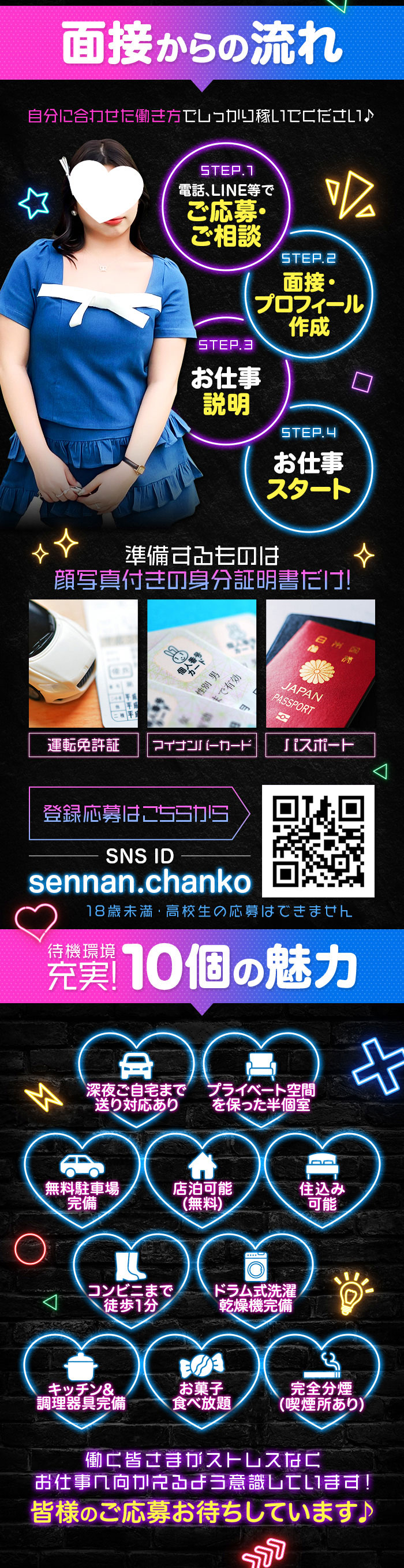 鬼出勤で鬼稼ぎ!!!仙南ちゃんこでは現在【鬼出勤】してくれるキャストさんを募集しています!!!鬼出勤とは…とにかく沢山出勤する事です!現在仙南ちゃんこは姉妹店の【多賀城ちゃんこ】がオープンしたばかりでキャストさんが各店舗に分散されたので積極採用中です!!!積極採用と聞いても「せっかく出勤したのにお仕事がつかない」という場合もよくありますよね??でも仙南ちゃんこなら大丈夫!!元々のお店の勢いがすごかったために出来た新店舗!なのでお店の人気はまだまだ増していく一方です!!だから今は【出勤したら出勤しただけ稼げる】という状態(≧∀≦)もちろん店泊もOK!!出稼ぎのかたも大歓迎です!!ご応募・ご連絡お待ちしております!------------------------------------------------------------------------★給与★日給35,000円~1日で60,000円稼ぐ女の子もいます(*^^*)★アピールポイント★・本指名やオプション料はフルバック!・完全個室待機・Wi-Fi完備・キッチンお風呂利用可能・冷蔵庫・電子レンジ・ドラム式洗濯乾燥機・ドライヤー・ヘヤアイロン・鍵付きロッカー・防犯カメラ・全額日払い・ノルマ罰金一切なし・送迎あり・店泊可能・バック昇給あり・生理休暇あり・経験・未経験問いません★面接について★事務所やカフェなどで行うかLINEでのオンライン面接にも対応しております!※18歳未満・高校生の応募はできません仙南ちゃんこ07090727072多賀城ちゃんこ09025103868