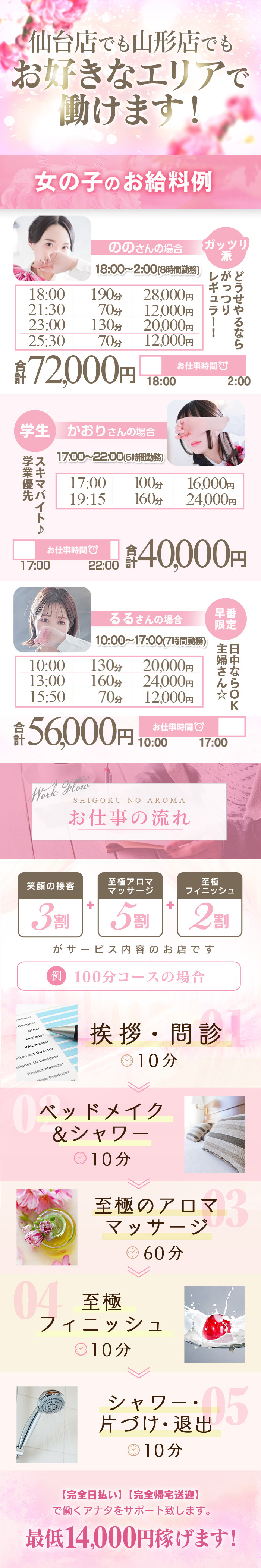 過激サービスが無いため、デリヘルよりも気楽に稼げます!性的オプションもありません!!山形と仙台にお店を構えており知名度抜群ですので安心して稼いで頂けます♪